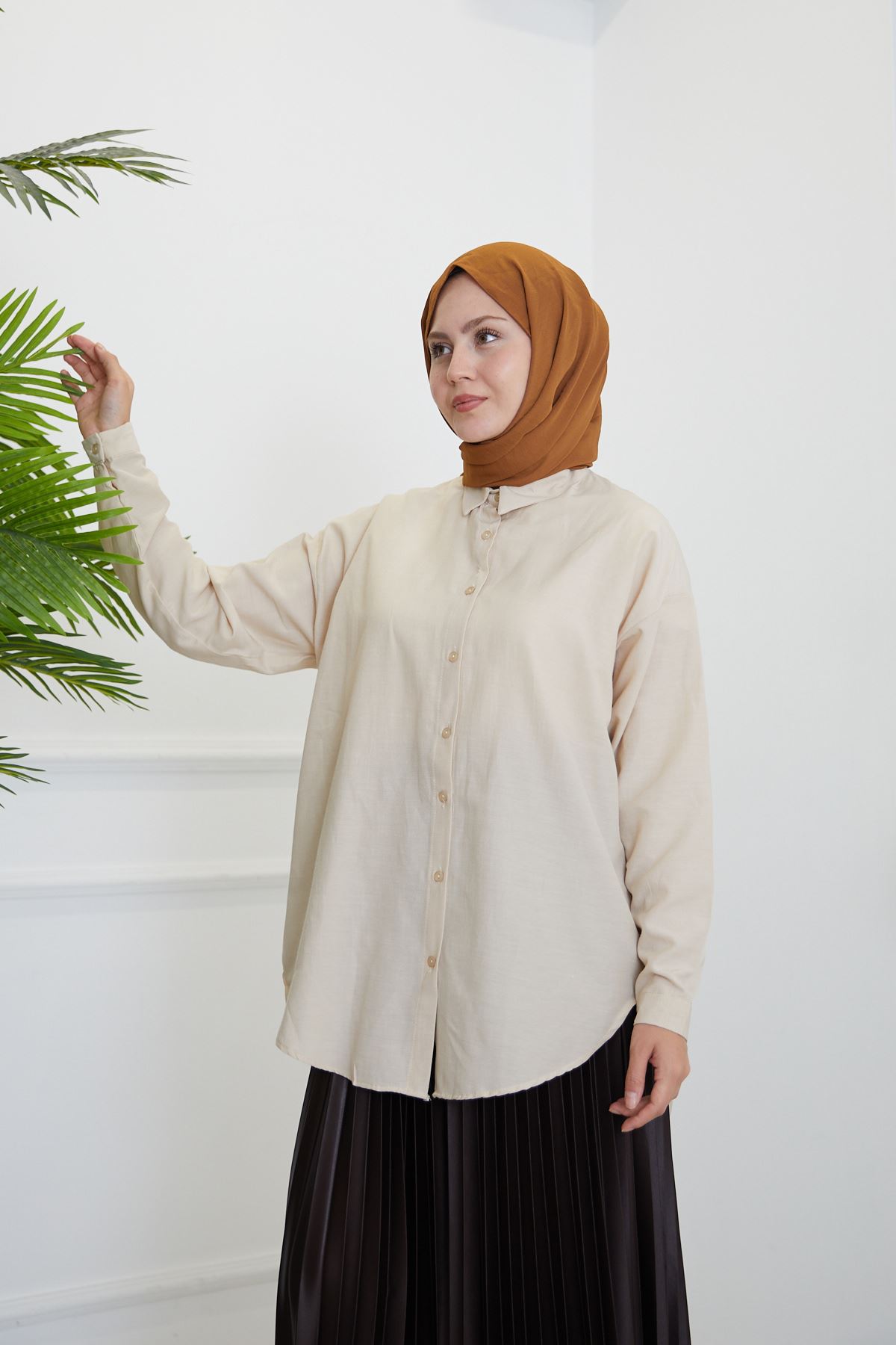 GLK00198-15 Düğmeli Poplin Gömlek-Taş