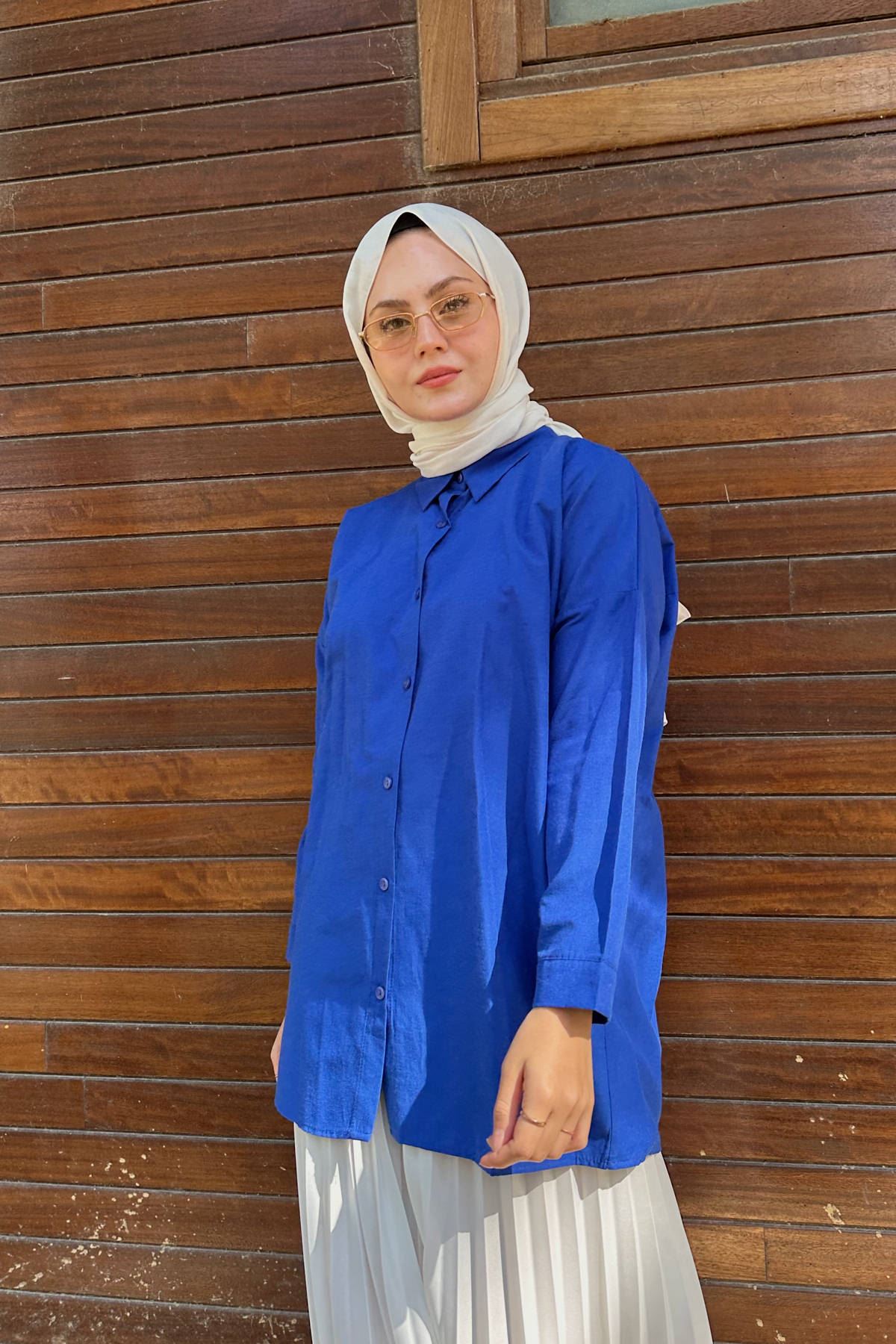 GLK00198-23 Düğmeli Poplin Gömlek-Saks