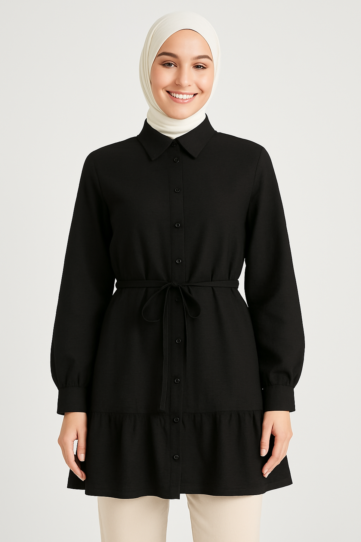 TUN05862-SYH Etek Fırfır Detay Tunik-Siyah