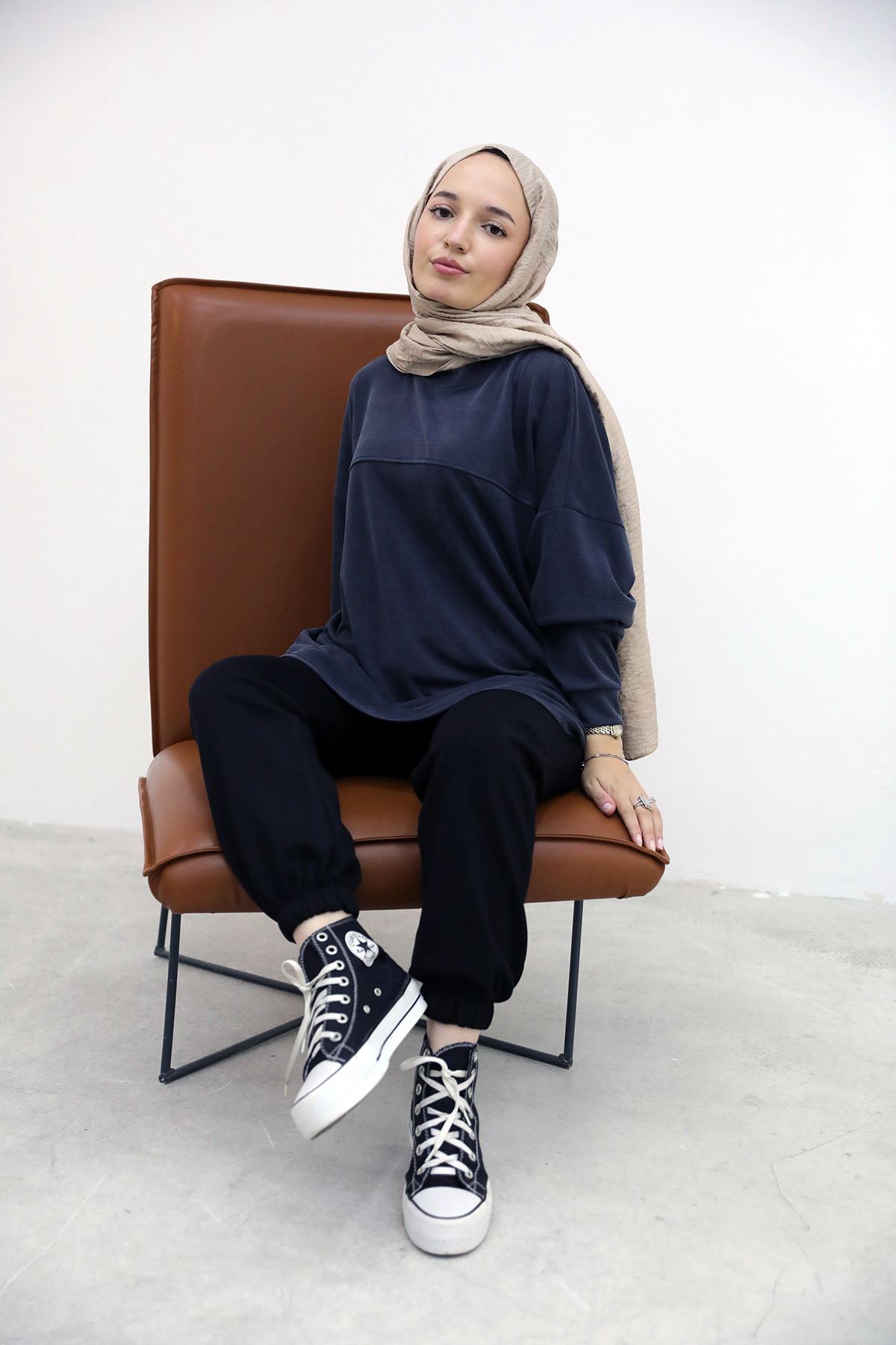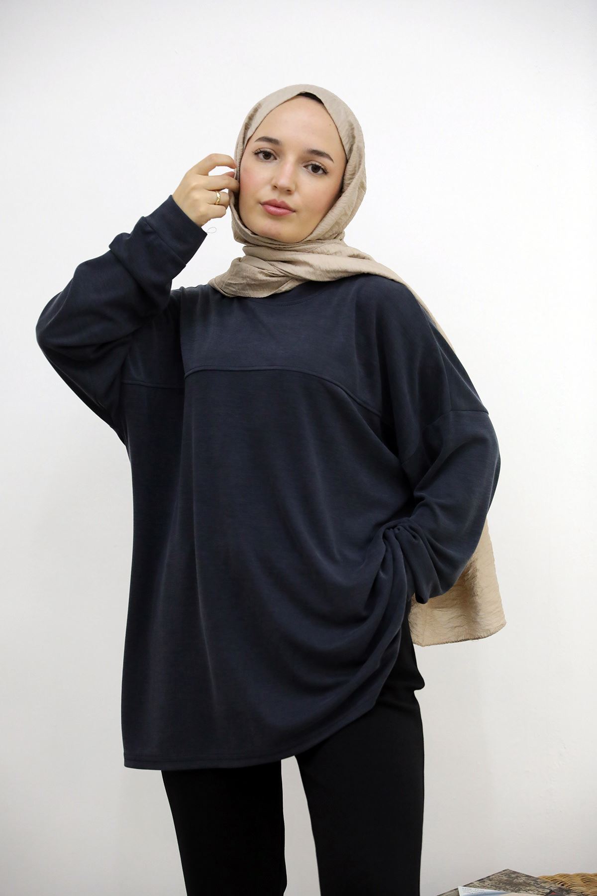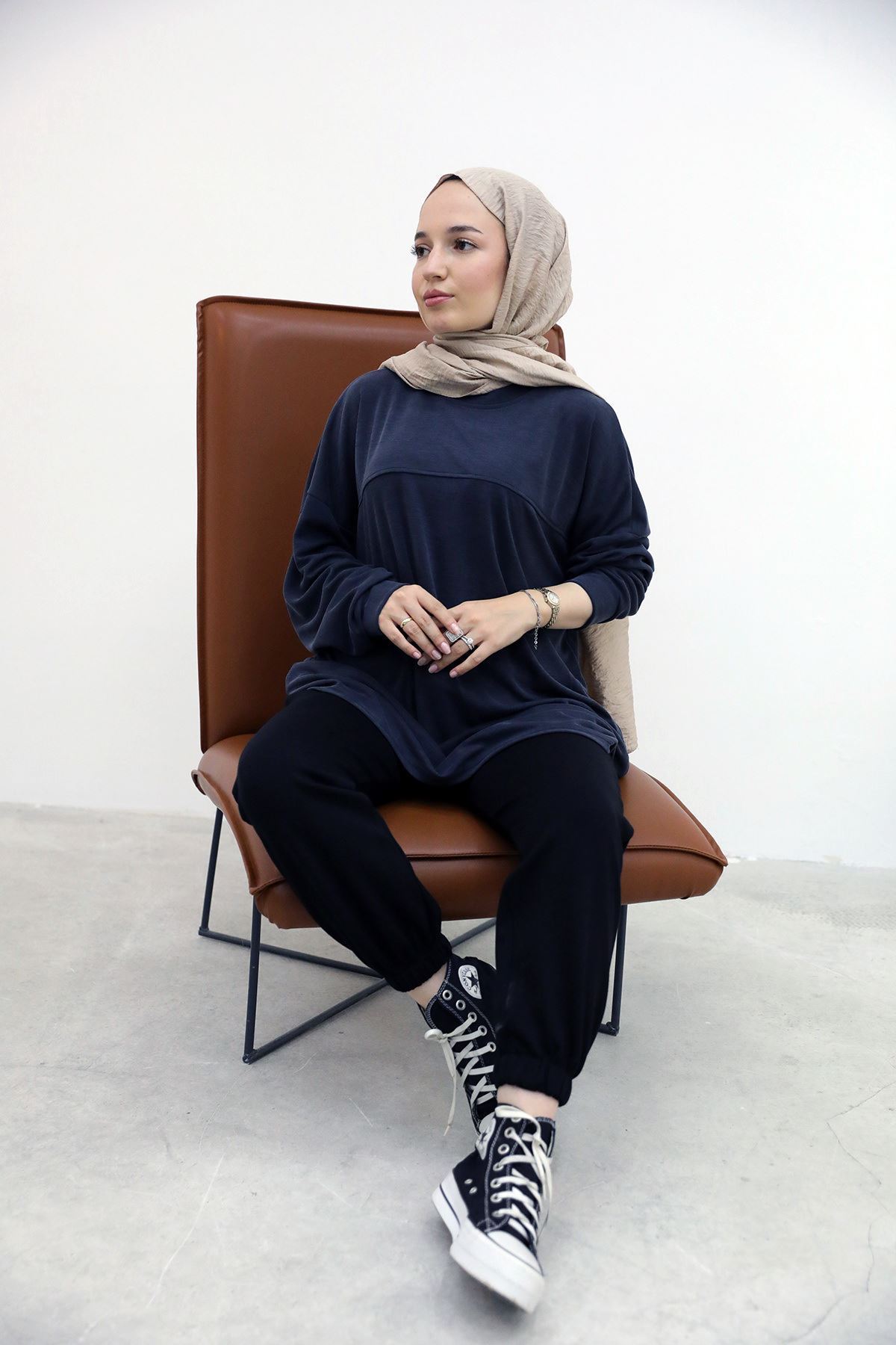 TUN05929-LCV Ön Roba Detay Pike Tunik-Lacivert